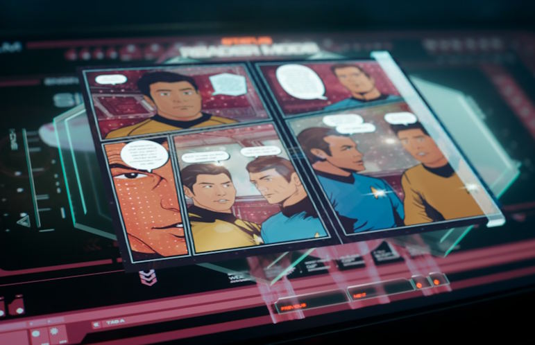 Das Comicheft zu dieser Episode ist nun übrigens überall erhältlich, wo Sie diese Episode gerade sehen. Genau, SIE meinen wir! Nämlich die Qualitätssicherungs-Abteilung von Paramount! Einfach die Treppe runter und dann links.
